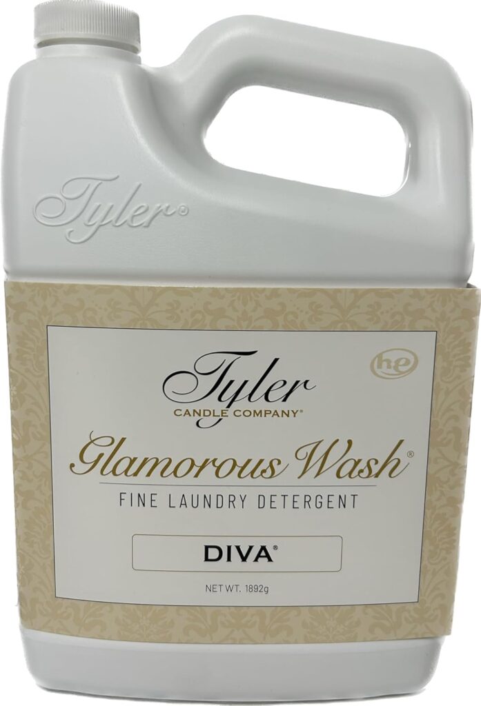 Tyler Glam Wash in Diva fragrance combines luxury with performance. This 64 fl oz half-gallon of liquid laundry detergent is HE-safe and perfect for washing delicate garments or everyday clothes with a long-lasting, elegant scent.